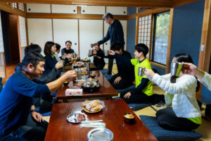 前日からおいでくださいました。みっちり芋掘りの予定でしたが雨だったので、これを機にと初めてきた方にプレゼンを。