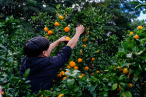 稲葉農園でみかんの収穫をしました。農園主は不在の中、宮川さんが本領発揮!