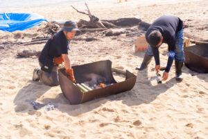 静かにビーチクリーン。