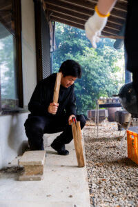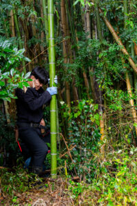 さて、こちらは竹を切っています。