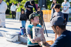 閉会の最後は、いちばん大きなお芋をとった人に記念品贈呈!