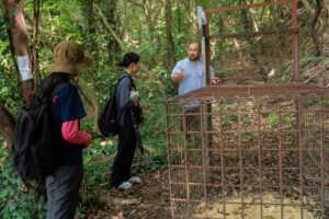 箱罠を初めて見たというインターン生のお二人。