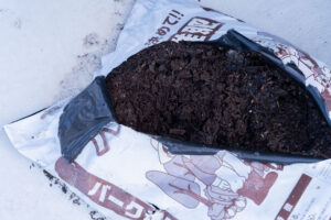 減溶化施設の前に置いてあった堆肥、新品のものが破られていました。イノシシさんがスンスンしたようです。